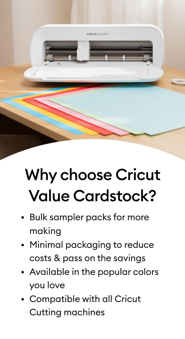 With Cricut® Value Cardstock, you can decorate bulletin boards, create school projects, make party decor, and so much more. The sampler includes 80 sheets with a range of colors to help bring your most vibrant ideas to life. Cricut Value Cardstock is engineered to give you the perfect blend of cost and quality. By selling in bulk sizes and with simple packaging, we pass the savings on to you. Optimized for Cricut cutting machines. Automatic cut settings in Design Space® ensure you have the best cutting experience with every Cricut material and machine.
