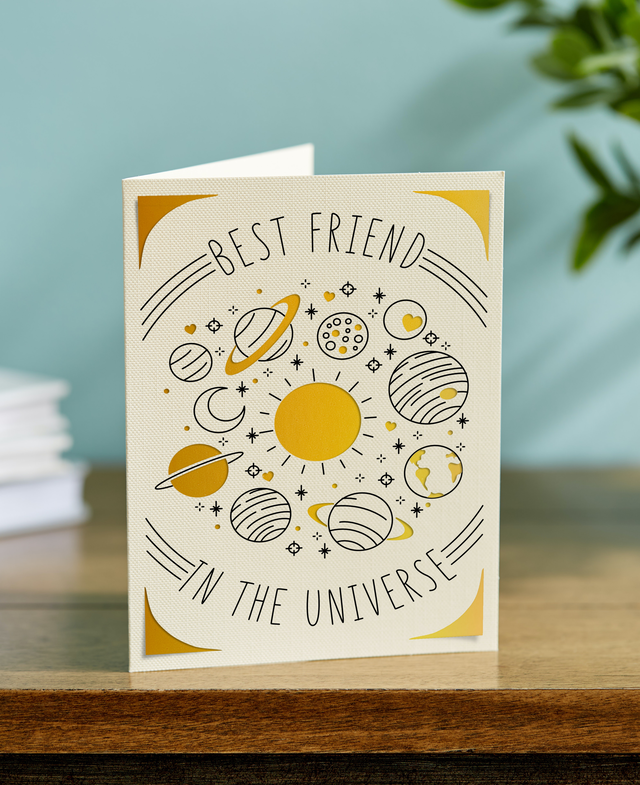 Erstelle im Handumdrehen die perfekte Karte. Wähle einfach ein Design aus, leg die Karte auf die Matte und lass Cricut Joy™ den Rest erledigen.